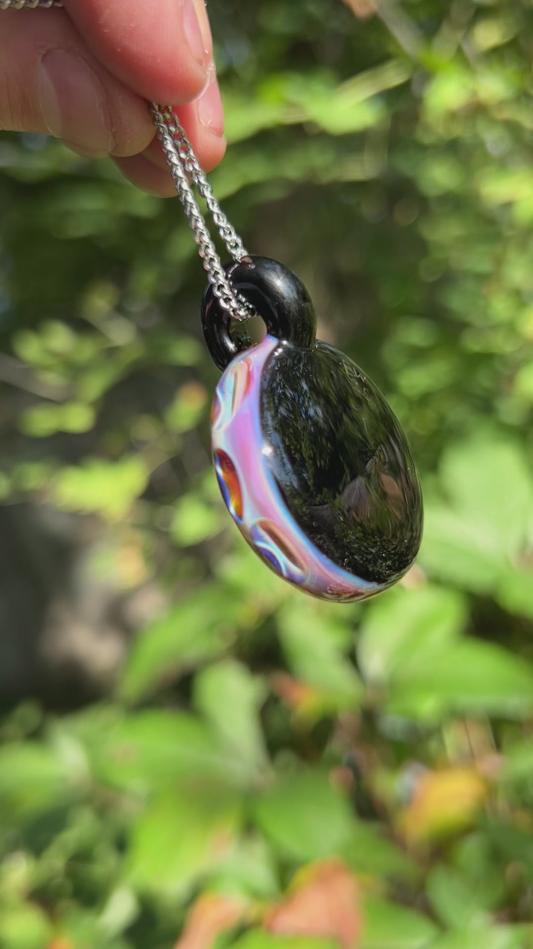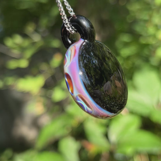 This pendant has to be my favorite one I've made so far. The colors are perfect and it also glows! I have a feeling I'll be chasing down trying to replicate it for awhile. Was made using a new amber purple color and some UV red. Glows best under 395nm UV light. Comes on a 20" stainless steel chain.
