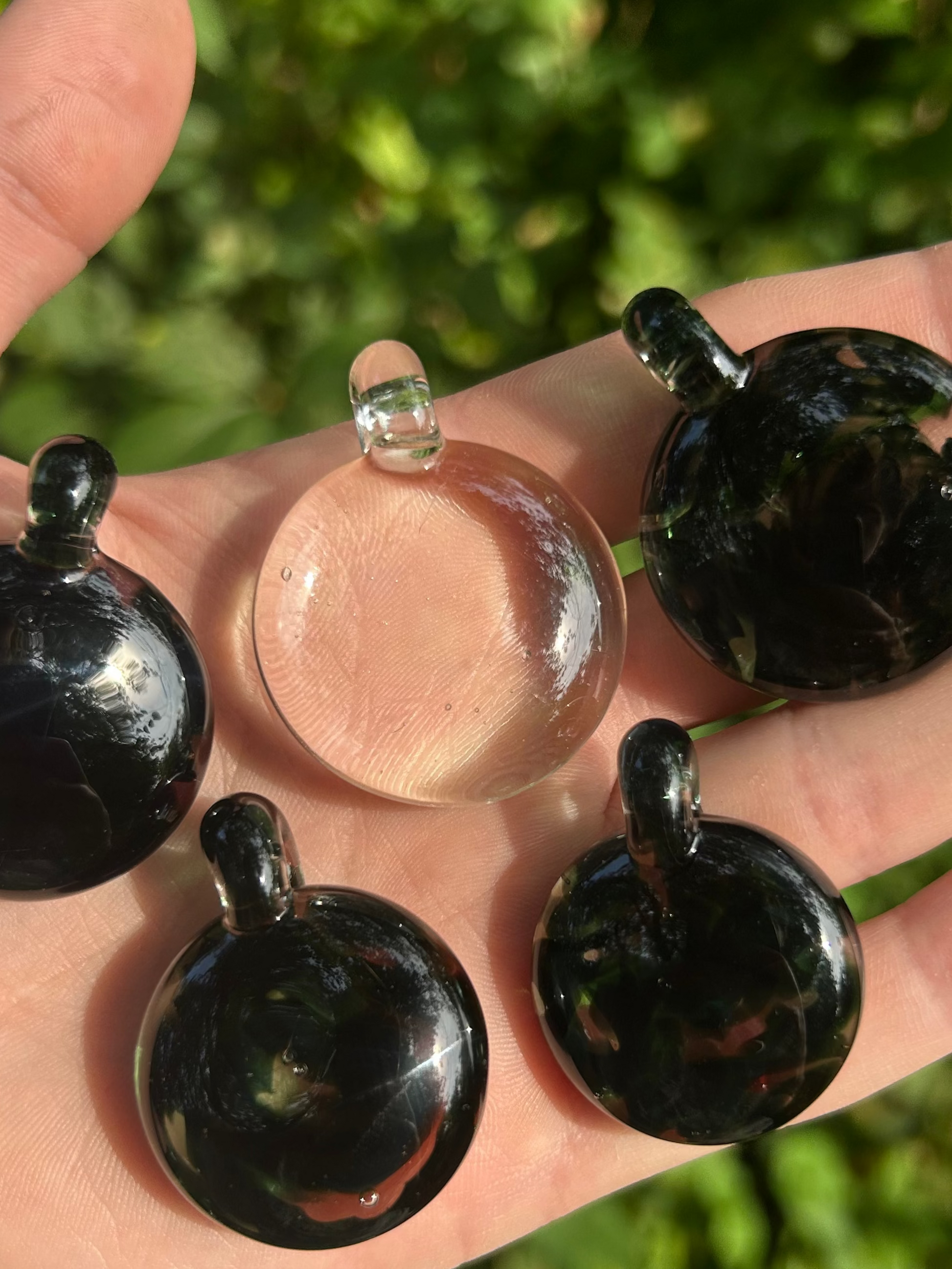 Made by collapsing a UV cane onto its self causing a crazy rainbow swirl pattern to emerge. Contains 7 different UV colors. Comes with a 20" stainless steel chain.