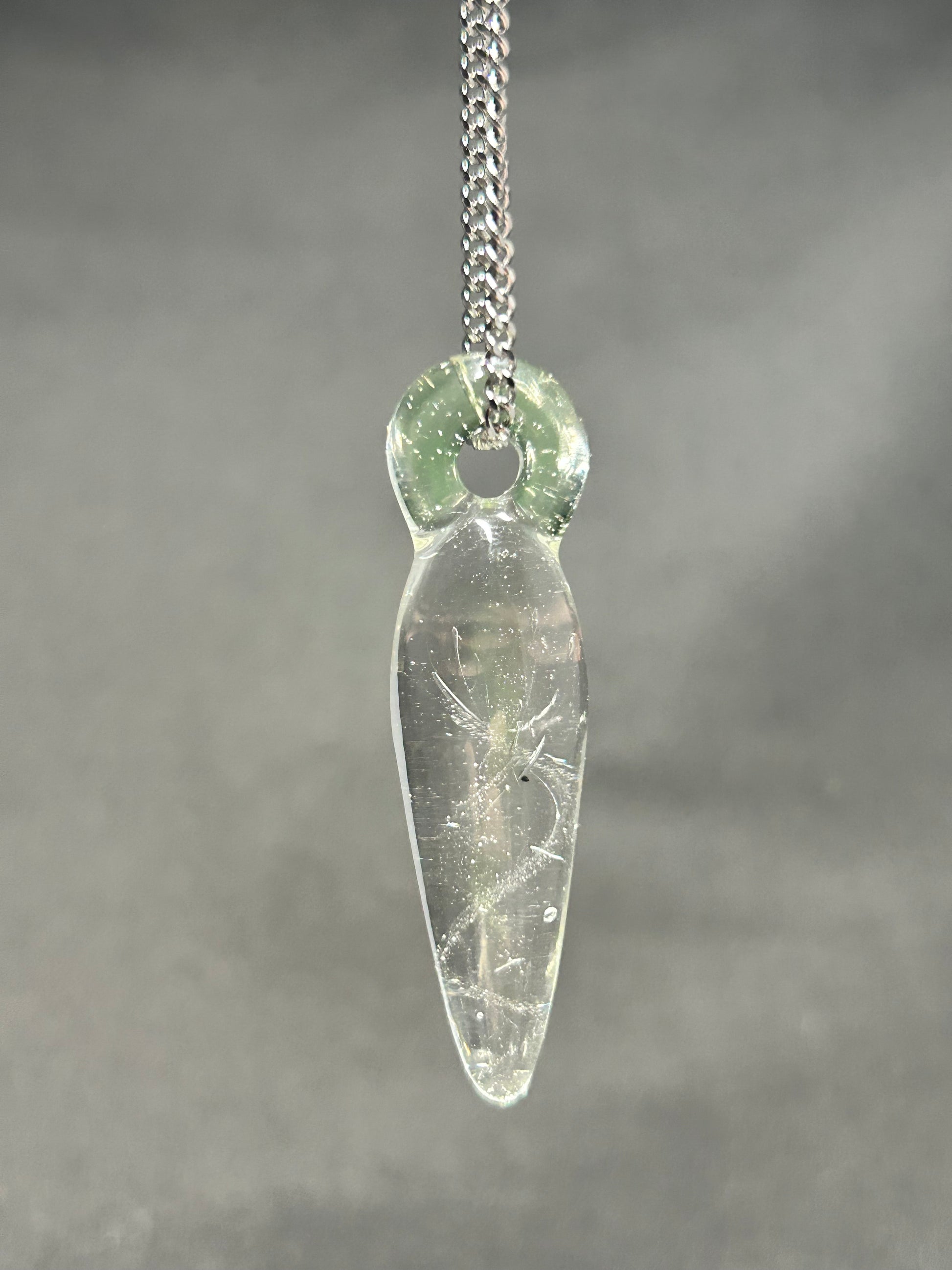 Still has that excellent rainbow glow just has a few to many bubbles and a few specs of color encased by accident.