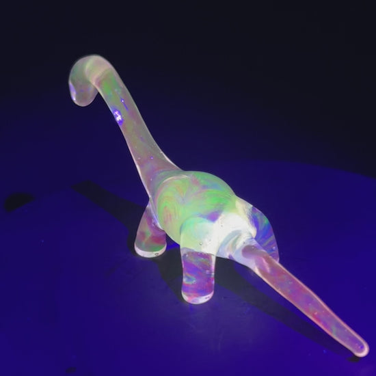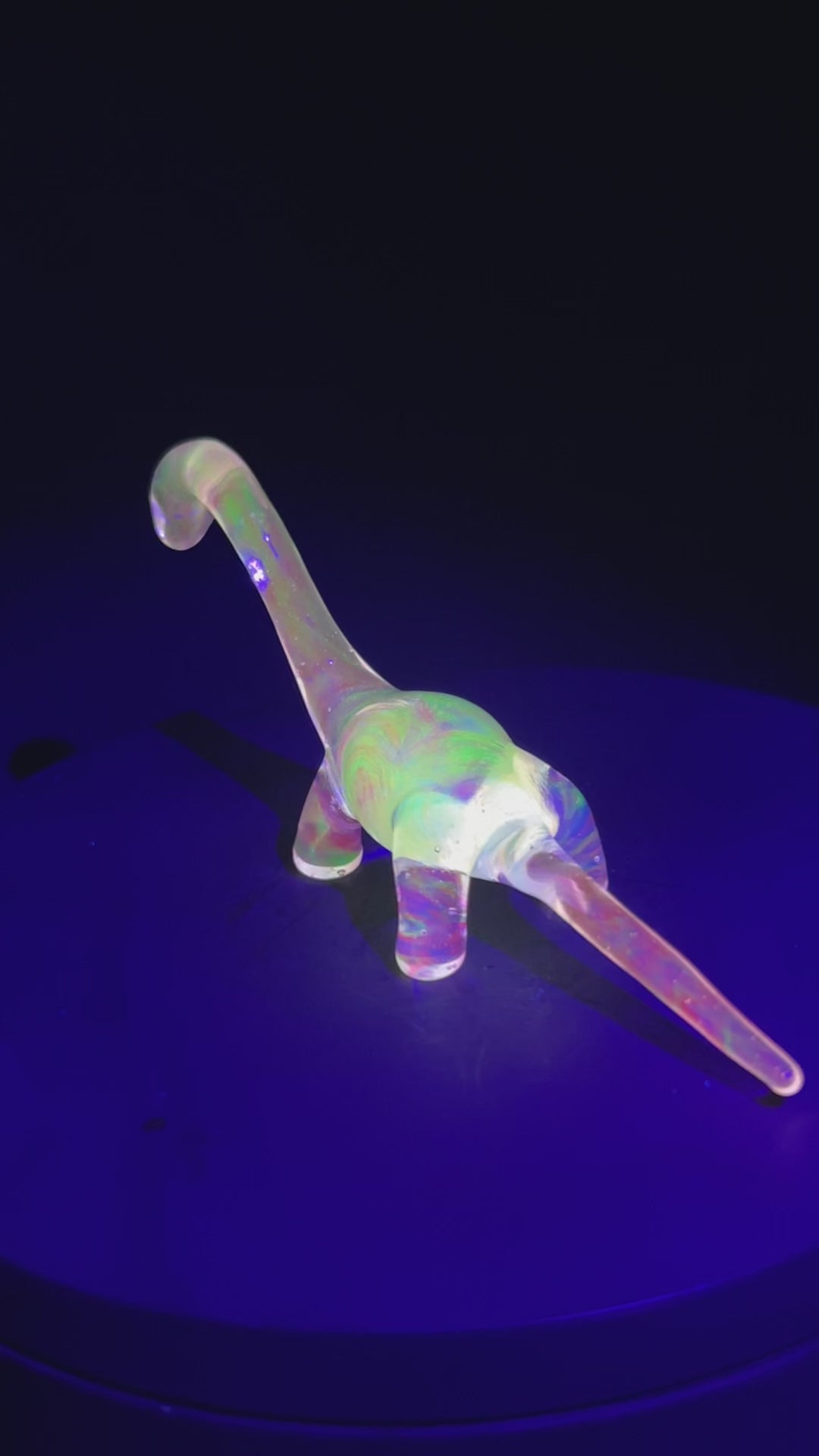 This one was a test of mixing 3 different UV colors together. While mostly red and green there are some hints of blue at the right angles. Its about 3.7 inches long and 2 inches tall. Looks best under a 395nm UV light.