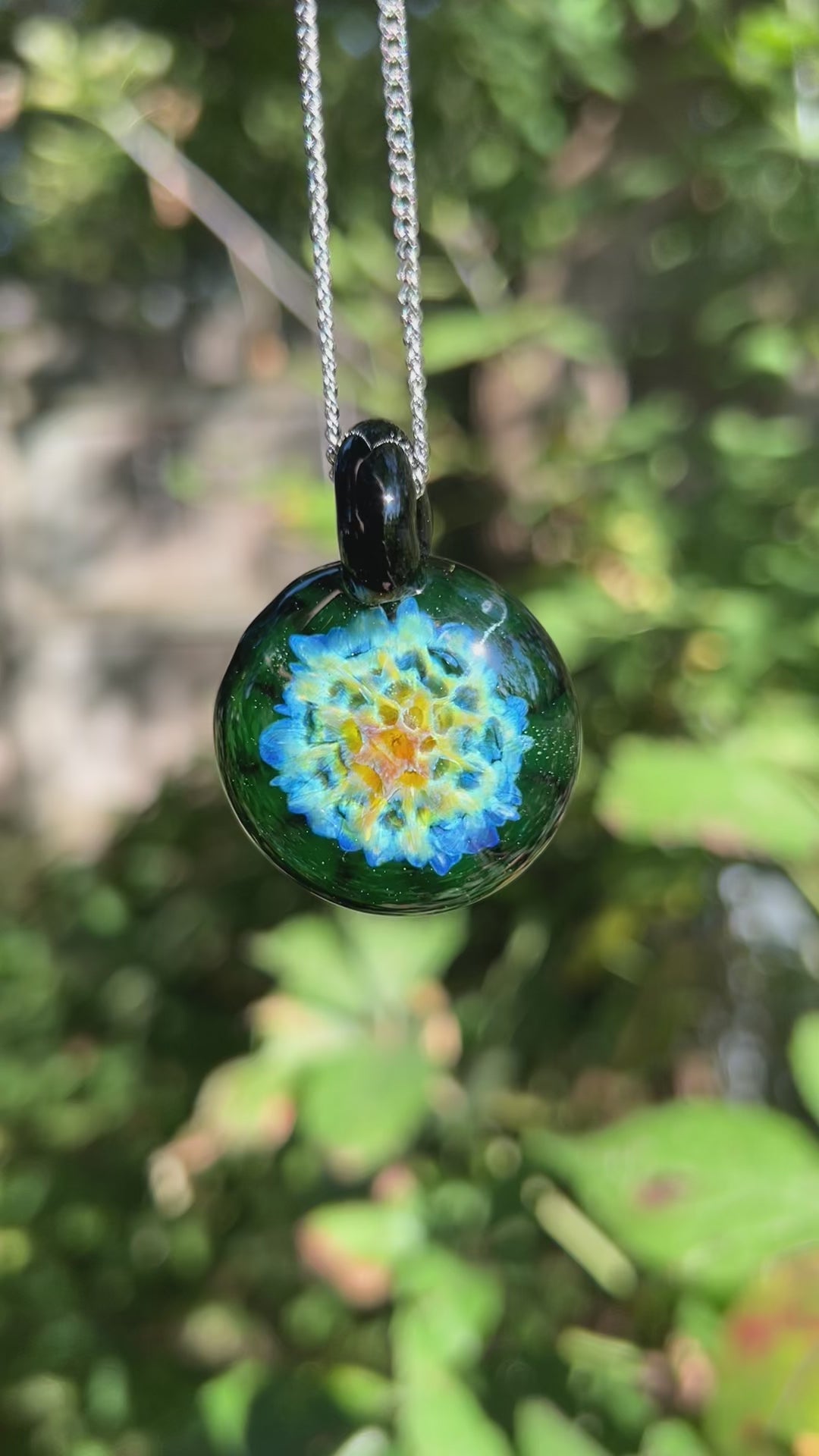 Comes on a 20" stainless steel chain. Glows best under 395nm UV light