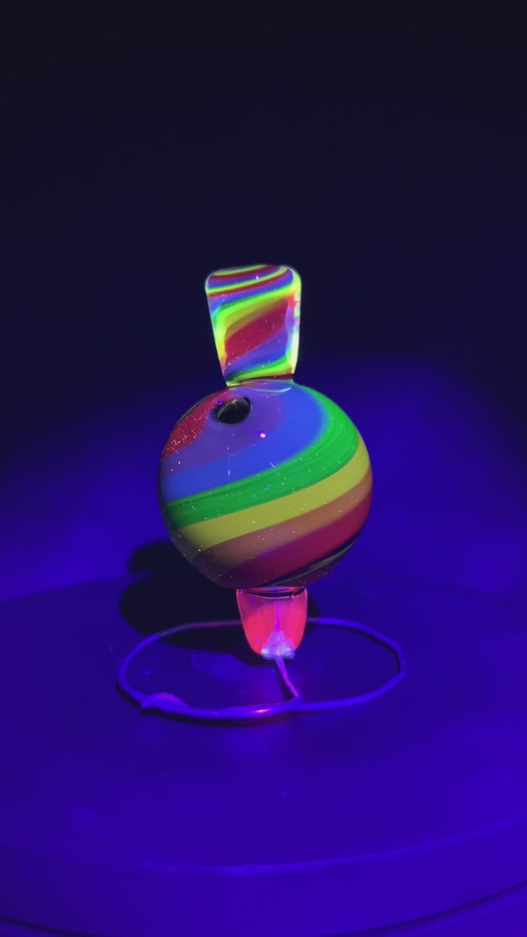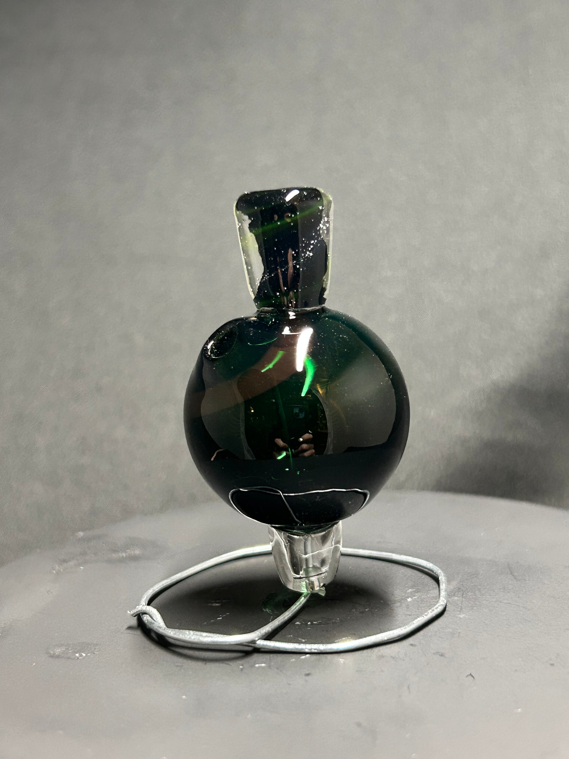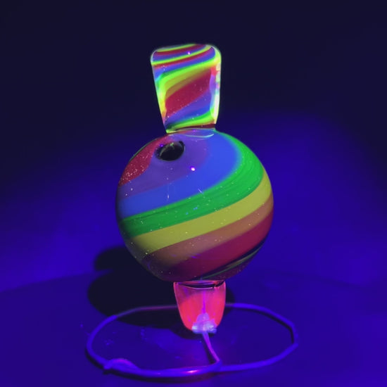 This bubble cap is about 2.35" tall and 1.32" (33mm) wide. The different colors come from different ratios of europium and uranium in the glass. Don't mind the wire coming out the bottom that's just for taking pictures